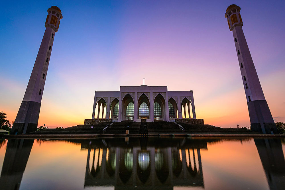 “มัสยิดกลางประจำจังหวัดสงขลา” หรือชื่อเต็ม “มัสยิดกลางดิย์นุลอิสลาม” เป็นศาสนสถานซึ่งเป็นที่รู้จักกันดีในหมู่ช่างภาพ ด้วยลักษณะสถาปัตยกรรมที่สวยสง่า มีสระน้ำด้านหน้าทอดตัวยาวกว่า 200 เมตร ทำให้มัสยิดแห่งนี้ดูละม้ายคล้ายคลึงกับทัชมาฮาลที่อินเดีย โดยเฉพาะช่วงพระอาทิตย์ตกที่นี่จะงดงามตระการตามากเป็นพิเศษ จึงไม่ต้องแปลกใจว่าที่นี่จะเป็นที่นิยมของเหล่าบรรดาช่างภาพทั้งหลาย