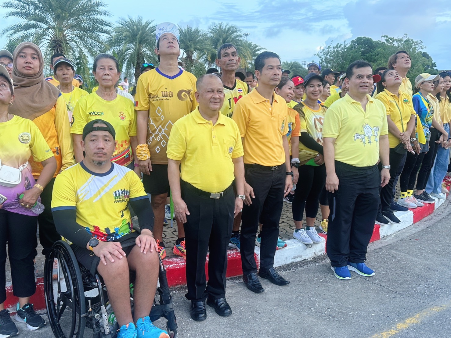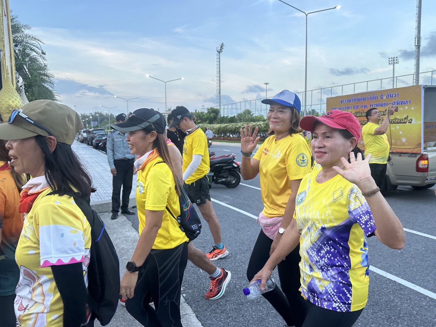 เมื่อขบวนนักวิ่งมาถึง นายมาหะมะพีสกรี วาแม รองผู้ว่าราชการจังหวัดสงขลา ได้ทักทายพูดคุยให้กำลังใจก่อนที่ทุกคนจะร่วมกันยืนตรงเคารพธงชาติ เชิญธงลงจากยอดเสา ในเวลา 18.00 น. เป็นการแสดงออกถึงความจงรักภักดีต่อสถาบันชาติ ศาสนา และพระมหากษัติย์